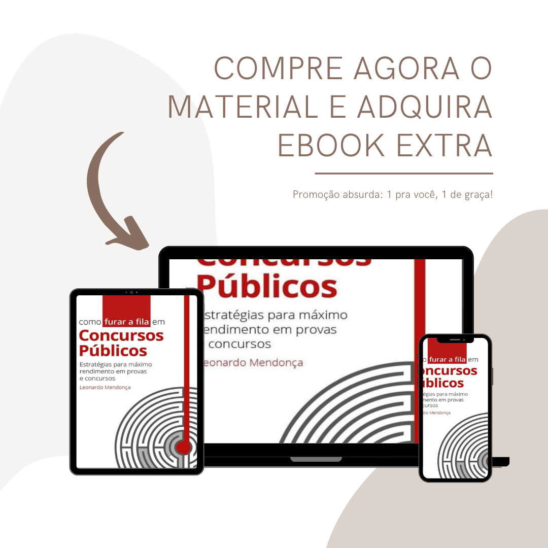 NA COMPRA DO MATERIAL VOCÊ ADQUIRE APOSTILA + MAPA MENTAL+ SIMULADOS+AUDIOBOOKS E COMO BÔNUS EXTRA VOCÊ RECEBE UM EBOOK COM AS MELHORES ESTRATÉGIAS PARA PASSAR EM CONCURSOS